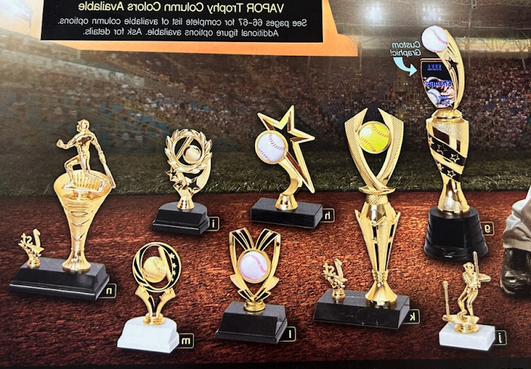 Personalized trophies for recognizing achievements in sports, academics, and other events. Available in various designs and sizes.